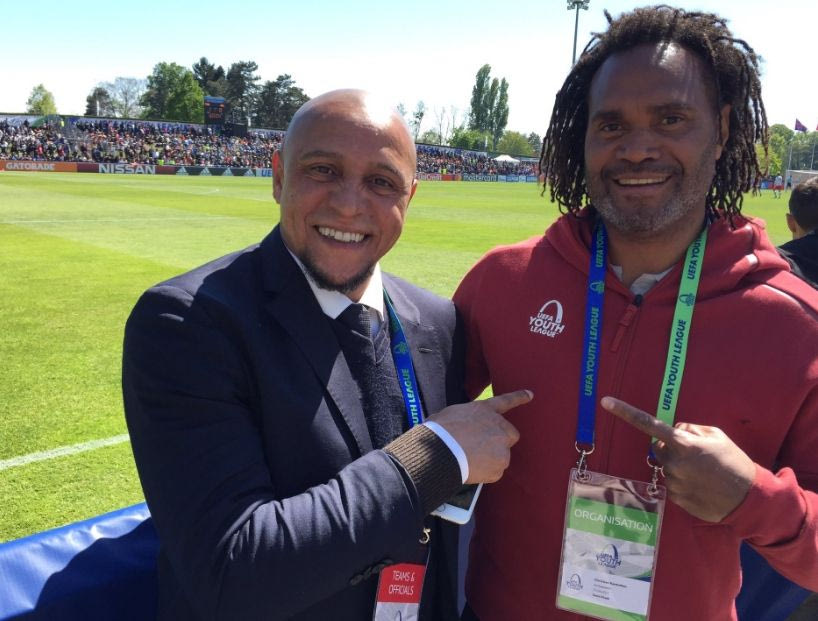 Εκεί βρήκε και τον θρύλο της Εθνικής Βραζιλίας, αλλά και της Ρεάλ, Ρομπέρτο Κάρλος βγάζοντας αναμνηστική φωτογραφία. Οι δυο τους γνωρίζονται αρκετά καλά καθώς υπήρξαν και συμπαίκτες για τρία χρόνια στη Ρεάλ (1997-2000).