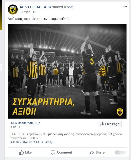 Η ΠΑΕ ΑΕΚ ευχαρίστησε την ΚΑΕ ΑΕΚ για τις ευχές της και την ίδια ώρα… απαίτησε: “Από εσάς περιμένουμε ένα ευρωπαϊκό!”.
