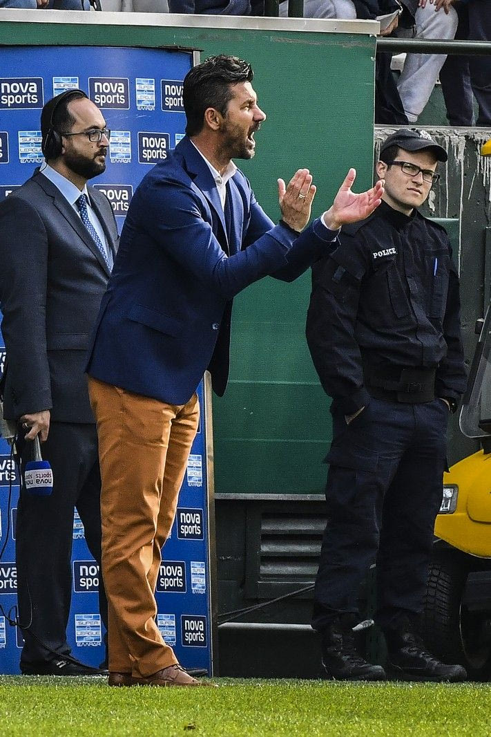 Στο παιχνίδι με τον Πανιώνιο στο “Απόστολος Νικολαϊδης” ο Εβρίτης τεχνικός των πράσινων επέλεξε μπλε σακάκι το οποίο συνόδευασε με ανάλογης απόχρωσης σακάκι αλλά και καφέ παντελόνι σ’ έναν εξτρίμ συνδυασμό.