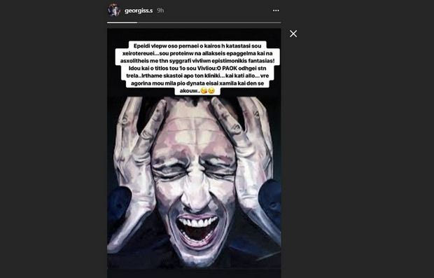 Το Instagram επέλεξε και πάλι ο Γιώργος Σαββίδης με σκοπό να στείλει το μήνυμα του, άγνωστο αυτή τη φορά για που/ποιον.