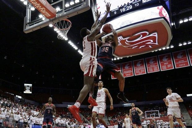 Arizona guard Allonzo Trier (35) shoots against Washington State forward Robert Franks (3) during the first half of an NCAA college basketball game in Pullman, Wash., Wednesday, Jan. 31, 2018. (AP Photo/Young Kwak) AP