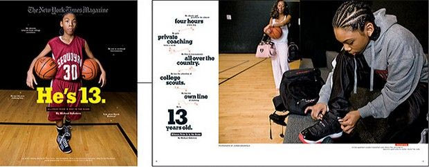 “Τα ταξίδια και τα ξενοδοχεία είναι κάτι που παλαιότερα συνέβαινε αφότου ο όποιος παίκτης ήταν αρκετά καλός, ώστε να παίζει σε κολέγιο. Τώρα, το μπάσκετ λειτουργεί σε επίπεδο που ξεπερνά όλα τα άλλα σπορ, με την προσοχή, τα οφέλη και τους πειρασμούς να αφορούν και παιδιά μικρότερα από εκείνα που πηγαίνουν λύκειο”, έγραψαν οι NYT. Είχαν ήδη περάσει χρόνια από τότε που σχολεία άρχισαν να παρακολουθούν παιδιά δημοτικού, έτοιμα να δώσουν υποτροφίες και κολέγια περίμεναν από πίσω, για πάσα στα προγράμματα τους.