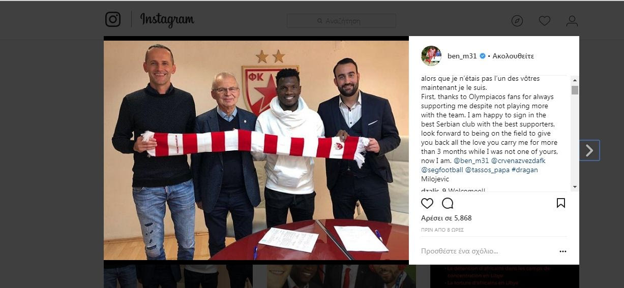 Ο Μπεν λίγο αργότερα ανέβασε ποστάρισμα στο λογαριασμό του στο Instagram, όπου ευχαρίστησε τον κόσμο του Ολυμπιακού, ενώ παράλληλα αποθέωσε εκείνον του Ερυθρού Αστέρα. Αυτή η… αποθέωση είναι που βγάζει και είδηση, αφού φαίνεται πως του… ξέφυγε πως το φλερτ με τους Σέρβους κρατά εδώ και τρεις+ μήνες!