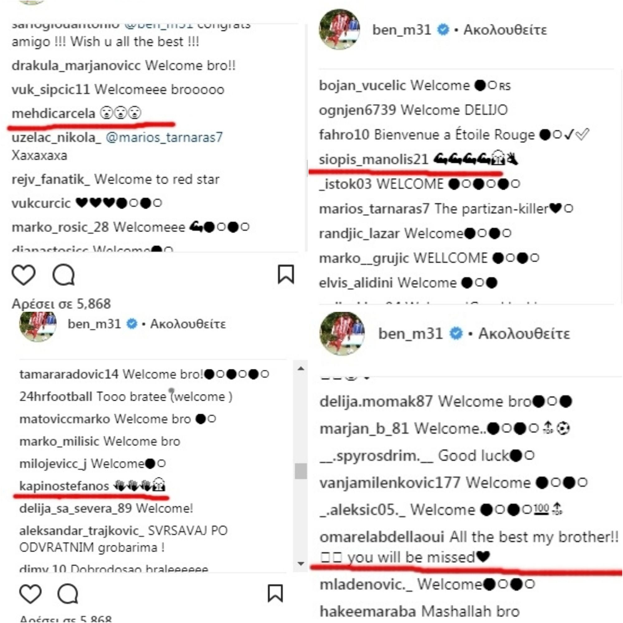 Ο Μπεν θέλησε να ευχαριστήσει τον Ολυμπιακό και ταυτόχρονα να... καλοπιάσει τους φίλους του Ερυθρού Αστέρα με ποστάρισμα στο Instagram, αλλά άθελα του αποκάλυψε πως οι επαφές του με τους Σέρβους ξεκίνησαν από τις αρχές... Νοεμβρίου! Τι σχολίασαν οι Καρσελά, Καπίνο (φωτογραφίες).