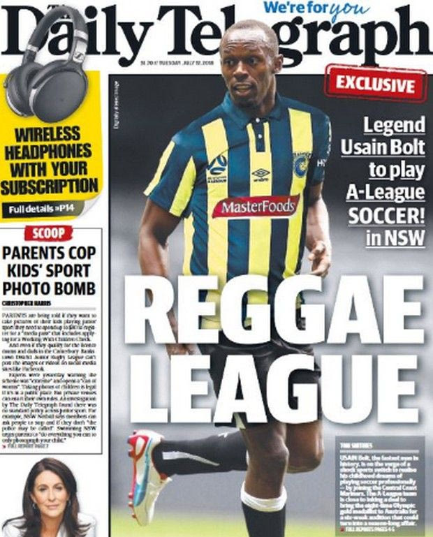 Σύμφωνα, λοιπόν, με αποκλειστικό ρεπορτάζ (που έγινε και εξώφυλλο) της “Daily Telegraph”, ο Μπολτ έχει στα χέρια του επίσημη πρόταση από την Central Coast Mariners της Αυστραλίας και βρίσκεται κοντά στο να πει το “ναι”.