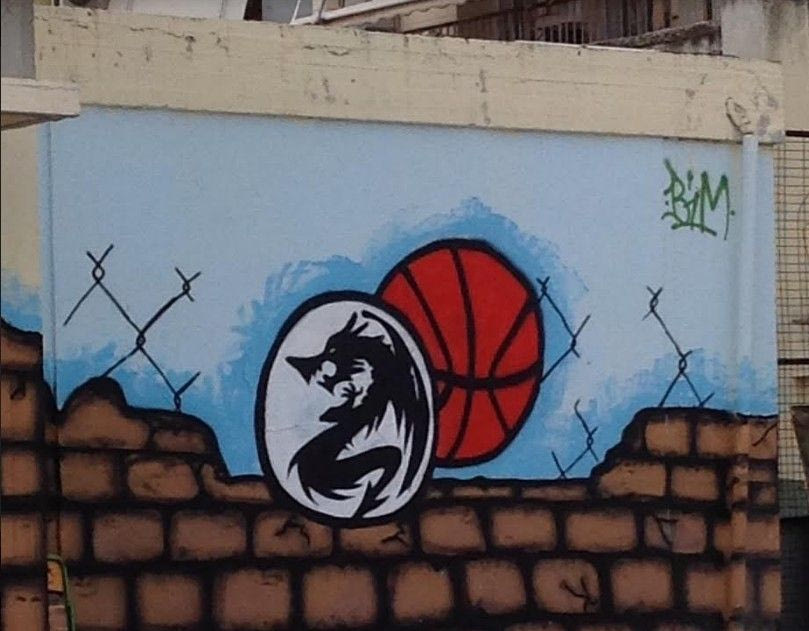 Πρόκειται για ένα γκράφιτι χωρισμένο ουσιαστικά σε τρία μέρη. Στο ένα η μορφή του Παναγιώτη Γιαννάκη με τη φανέλα με το Νο6 της Εθνικής να σηκώνει την μπάλα και όλη την Ελλάδα στους ώμους του.