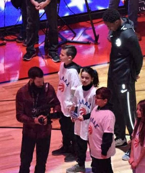 Ο μικρός είναι ο Αντώνης Κεφαλλονίτης που ζει μόνιμα με την οικογένειά του στο Τορόντο τα τελευταία χρόνια. Μπήκε στο γήπεδο μαζί με τον σταρ των Ράπτορς και στάθηκε μπροστά τους κατά την ανάκρουση του Εθνικού Ύμνου των ΗΠΑ.