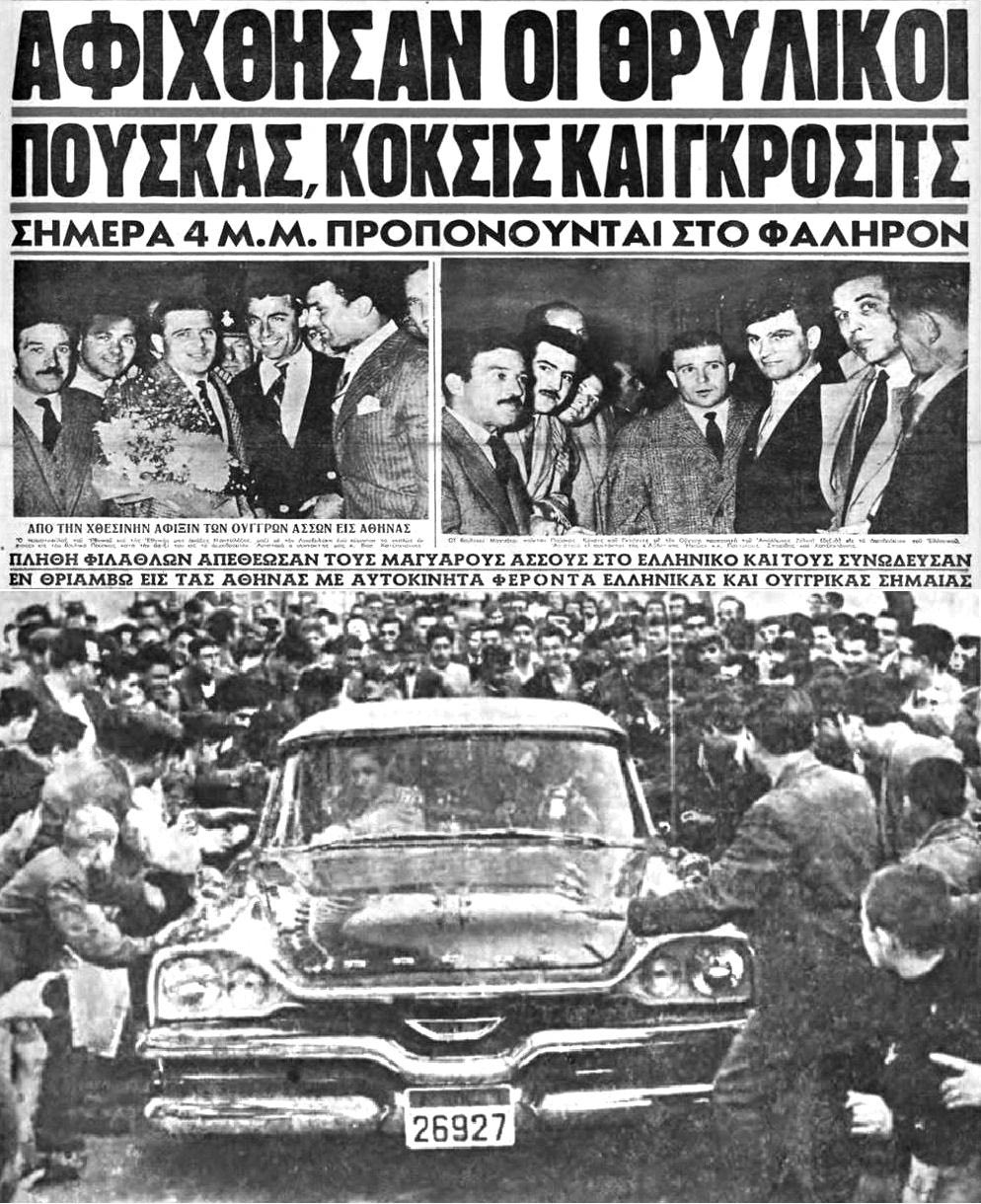 Η αγωνιστική απραξία φάνηκε πάρα πολύ γρήγορα στο σώμα του, έβαλε πάνω από 18 κιλά, δεν έμοιαζε πλέον με αθλητή. Τα μέλη εκείνης της Honved προσπαθούσαν να κερδίσουν κάποια χρήματα παριστάνοντας τον περιοδεύοντα θίασο ανά την Ευρώπη, είχαν μετατραπεί στους Harlems του ποδοσφαίρου και η μοίρα θέλησε το 1957 να επισκεφθούν και την Ελλάδα. Οι Έλληνες φίλαθλοι δεν ήταν απλώς συγκινητικοί, οι αντιδράσεις τους και η υποδοχή τους υπήρξε μοναδική στα χρονικά. Υποδέχτηκαν κατά χιλιάδες τους Ούγγρους στο αεροδρόμιο, επικράτησε ένας άνευ προηγουμένου παροξυσμός και όταν διέρρευσαν οι πρώτες φήμες περί συμφωνίας των μεγάλων αστέρων (εκτός του Πούσκας και οι Τσίμπορ, Γκρόσιτς και Κόκσιτς) με τον Εθνικό, το ελληνικό ποδόσφαιρο εκτοξεύθηκε από την ανυποληψία στην κορυφή του ενδιαφέροντος πανευρωπαϊκά.