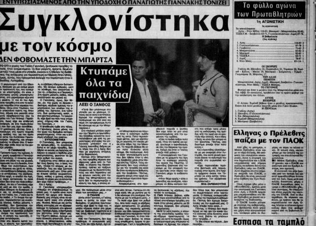 Ενδιάμεσα, όμως, μεσολαβούσε το ντέρμπι του πρωταθλήματος εναντίον του Άρη! Οι “κίτρινοι” είναι τρία χρόνια αήττητοι (από τον Μάρτιο του 1985) και μετράνε 80 σερί νίκες. Δεν έχουν όμως τον Παναγιώτη Γιαννάκη στη διάθεσή τους, που παρότι δεν πήγε στον Ολυμπιακό όπως ήθελε ο Κοσκωτάς (ήδη έχει ξεκινήσει ο σάλος για το σκάνδαλο που θα ακολουθούσε) παραμένει ωστόσο η διάστασή του με την διοίκηση του Άρη.
