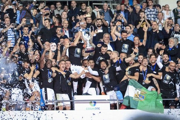 Πώς επέλεξε να γιορτάσει την κατάκτηση του Κυπέλλου ο χαφ του ΠΑΟΚ, ανεβαίνοντας στην εξέδρα των επισήμων για την απονομή.