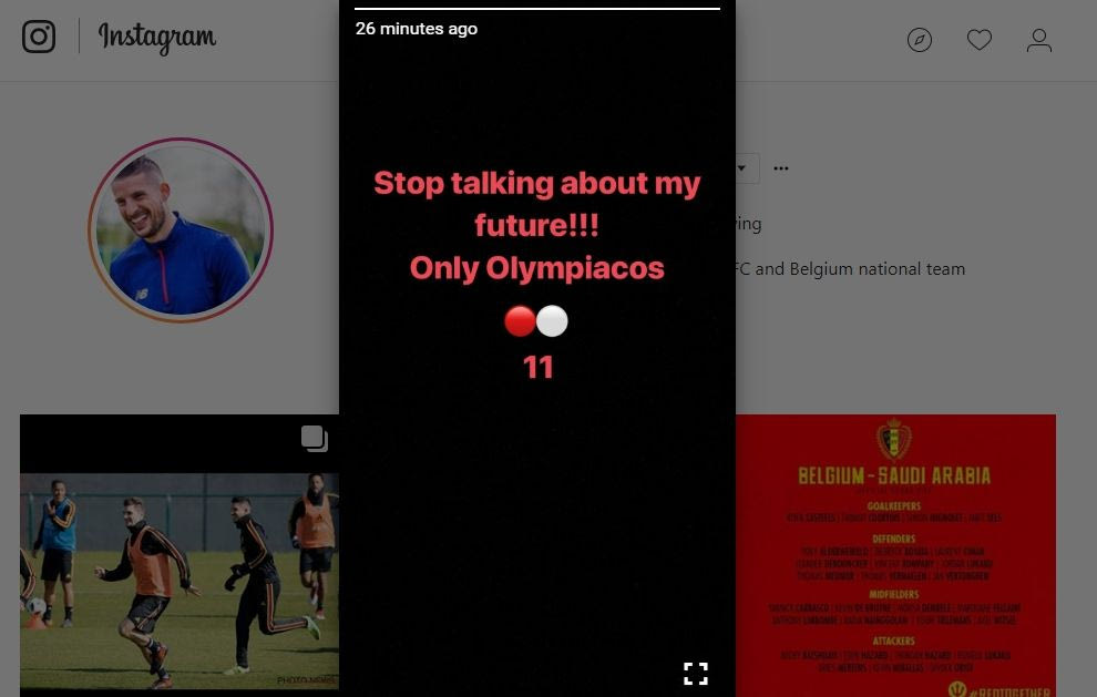 Ουσιαστικά έκανε ένα ποστ-ξέσπασμα στο λογαριασμό του στο Instagram, όπου λέει: “Σταματήστε να μιλάτε για το μέλλον μου!!! Μόνο Ολυμπιακός”. Όλα αυτά σε κόκκινο, μαύρο και άσπρο φόντο παρέα με το 11 που φοράει.