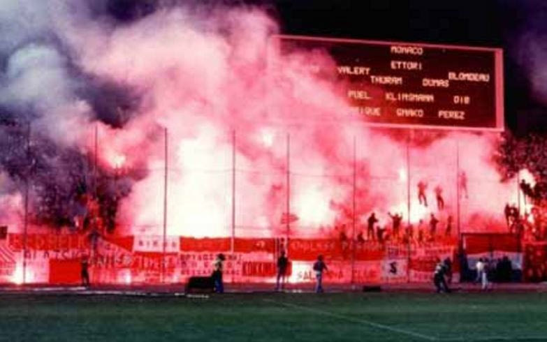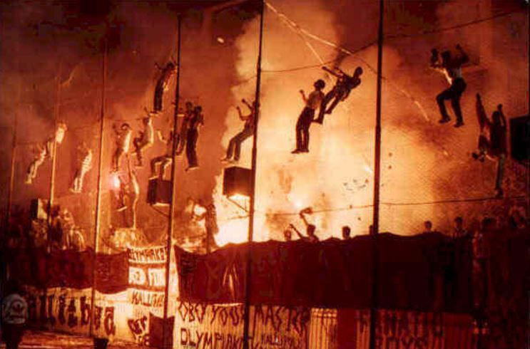 Ο Βενγκέρ περνάει στο ματς Djorkaeff και Fofana και η Μονακό γίνεται ξανά το απόλυτο αφεντικό του ματς. Η πίεση είναι αφόρητη, το σφυροκόπημα ανελέητο. Ο Μύρτσος πασχίζει να απομακρύνει τα σουτ των Μονεγάσκων, είναι σαφές ότι του λείπει η αυτοσυγκέντρωση, παρότι θετικός φοβάται γιατί η εικόνα του ματς μόνο φόβο προκαλούσε. Η Μονακό επιτίθεται και ξαναεπιτίθεται και ο κόσμος αντιλαμβάνεται ότι πρέπει να παρέμβει. Από το 75ο λεπτό κιόλας η εικόνα στην τηλεόραση χάνεται, δύσκολα διακρίνεται η πολύ μεγάλη απόκρουση του Μύρτσου στο σουτ του Blondeau. Καπνοί έχουν καλύψει τον ουρανό του φαληρικού Σταδίου, δεκάδες, ίσως εκατοντάδες καπνογόνα έχουν ανάψει, ο κόσμος φωνάζει άναρθρα, μόνο η ιαχή «Ολυμπιακός-Ολυμπιακός» ξεχωρίζει και οι εκκωφαντικές αποδοκιμασίες κάθε φορά που κάποιος αντίπαλος ελέγχει τη μπάλα.