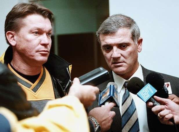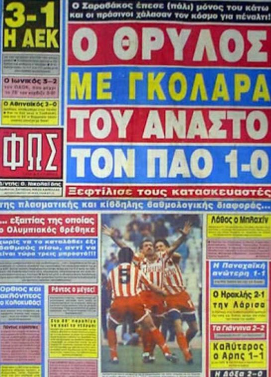 Ο Σαλιαρέλης στην “πρώτη” της ομάδας στο Ρέντη αφού προηγουμένως έχει αγκαλιαστεί με το Μπλαχίν και δηλώσει ότι ξημερώνουν χρυσές μέρες για τον Ολυμπιακό με τον Ουκρανό στον πάγκο, πιεζόμενος από τον κόσμο προκειμένου να εξηγήσει την πώληση του Λάγιος, δηλώνει ότι ο Ντέταρι έφυγε επειδή ο Μπλαχίν είναι Σοβιετικός και οι Σοβιετικοί σκότωσαν τους συγγενείς του στον πόλεμο!