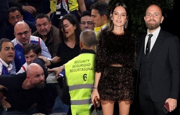 Ο Ιζέτ Οζιλχάν, γιος του προέδρου της Εφές, και η σύζυγός του Γιασεμίν. Αριστερά τα επεισόδια στην εξέδρα του Φερνάντο Μπουέσα Αρένα το 2019, όταν οι οπαδοί της Φενέρ έβριζαν τον Αταμάν. Έξαλλος ο Ιζέρ ορμάει η όμορφη Γιασεμίν προσπαθεί να τον συγκρατήσει