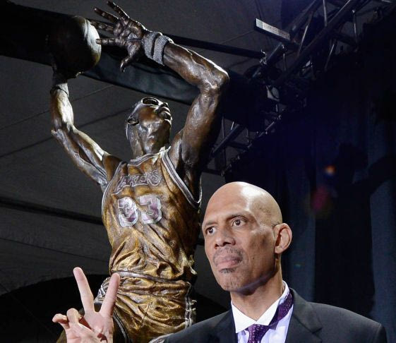 Staples Center: Ο Καρίμ Αμπντούλ-Τζαμπάρ ποζάρει μπροστά στην προτομή του