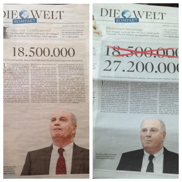 Μόνο που το ποσό αυτό αυξήθηκε την Τετάρτη σε 27.200.000 ευρώ και η εφημερίδα “Die Welt” απηύδησε, μη μπορώντας να πετύχει το σωστό μέγεθος της φοροδιαφυγής.