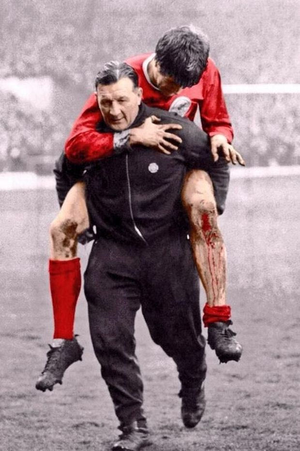 Η σκηνή είναι πραγματική και απεικονίστηκε σε μια θρυλική φωτογραφία, την οποία έχουν λατρέψει όλοι οι οπαδοί της ομάδας και εκφράζει τον λεγόμενο “τρόπο της Λίβερπουλ” (Liverpool way). Ο ένας για τον άλλον και όλοι για την ομάδα. Η φωτογραφία είναι από αγώνα του 1968. Ο Πέισλι, με τη φόρμα της ομάδας, κουβαλάει στους ώμους του τον Χιουζ, που έχει τραυματιστεί και από το δεξί γόνατο τρέχει αίμα. Ο μετέπειτα προπονητής των 4 πρώτων Κυπέλλων Πρωταθλητριών του συλλόγου ήταν τότε μέλος του τεχνικού επιτελείου, δίπλα στον Σάνκλι. Είχε προσληφθεί ως φυσιοθεραπευτής, λόγω της μοναδικής ικανότητας να κάνει διάγνωση με το… μάτι. Έβλεπε έναν παίκτη να τραυματίζεται στο γόνατο και έλεγε “σε δυο εβδομάδες θα κάνει χειρουργείο”. Κι έτσι γινόταν.