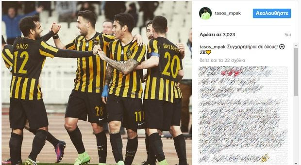 O διεθνής Έλληνας αμυντικός τοποθετήθηκε σε μια ανάρτηση του Τάσου Μπακασέτα στον προσωπικό του λογαριασμό στοInstagram. “Συγχαρητήρια σε όλους” ήταν το σχόλιο του Ενωσίτη επιθετικού, κάτω από μια φωτογραφία που τον δείχνει μαζί με τους Μάνταλο, Σιμόες και Γκάλο να πανηγυρίζουν με τον σκόρερ Αραούχο το 2-0.