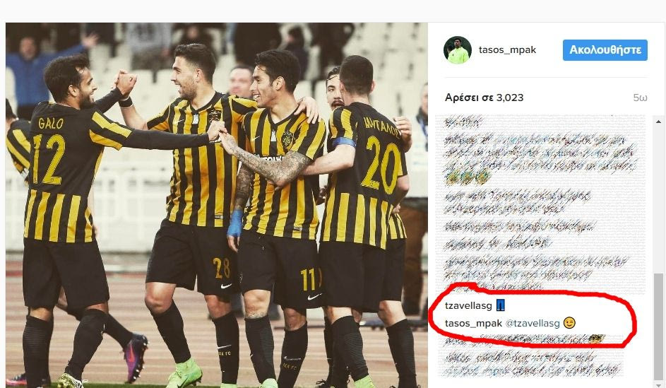 Με τον Μπακασέτα να απαντάει στοemoticon-παντελόνι του Τζαβέλλα άμεσα και με τον ίδιο τρόπο. Δηλαδή μεemoticonμε ένα ανθρωπάκι που κλείνει το μάτι του μάλλον πονηρά… Θυμίζουμε πως Τζαβέλλας και Μπακασέτας είναι συμπαίκτες στην Εθνική Ελλάδας του Σκίμπε.
