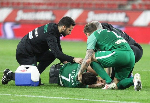 Στη συνέχεια όλοι “έπεσαν” πάνω στον Όμρι Άλτμαν και τον αγκάλιασαν αφιερώνοντάς του το αποτέλεσμα και δίνοντάς του κουράγιο, για τον “Γολγοθά” που τον περιμένει από εδώ και πέρα. Ο 24χρονος επιθετικός βγήκε από τα αποδυτήρια στις 22.35 με πατερίτσες, μαζί με μέλος του τεχνικού τιμ του Παναθηναϊκού και πήγε δεξιά, όπου τον περίμενε η σύζυγός του που ήρθε άρον-άρον με το αυτοκίνητό τους.