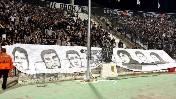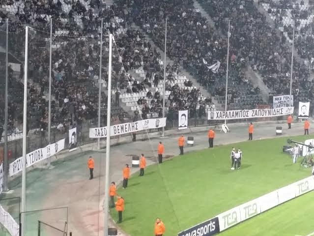 Ως εκ τούτου, όπως συνηθίζουν οι οπαδοί του ΠΑΟΚ, στα κάγκελα των εξεδρών του γηπέδου της Τούμπας είχαν αναρτηθεί οι προσωπογραφίες και τα ονόματα των θυμάτων.