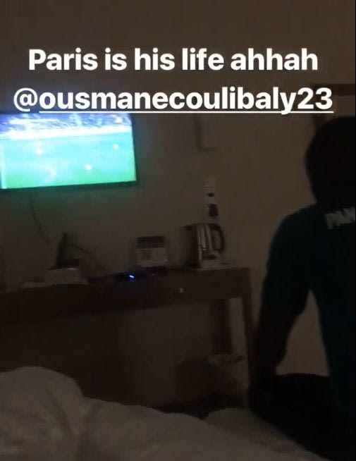Όπως μας ενημέρωσε ο Πολ-Ζοζέ Εμποκού, ο καλός του φίλος και συμπαίκτης του στον Παναθηναϊκό, Ουσμάν Κουλιμαπλί είναι φανατικός οπαδός της Παρί Σεν Ζερμέν. Οι δυο τους που μοιράζονται και το ίδιο δωμάτιο στις αποστολές του Τριφυλλιού είχαν κάτσει και παρακολούθησαν το Παρί – Μονακό (4-1) όπου η πρώτη πανηγύρισε το Λιγκ Καπ Γαλλίας.