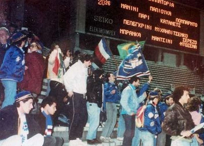 Η Σαμπντόρια με γκολ του μετέπειτα προπονητή του Ολυμπιακού Σρέτσκο Κάτανετς φεύγει νικήτρια από το στάδιο “Καραϊσκάκη” τελειώνοντας την υπόθεση πρόκριση από το πρώτο παιχνίδι, το χειρότερο όλων όμως είναι ότι σημειώνονται σφοδρά επεισόδια εντός και εκτός αγωνιστικού χώρου. Ο Τονίνιο Σερέζο τραυματίζεται από αντικείμενο, οι Ιταλοί εκδρομείς… γνωρίζουν από κοντά πολλά από τα μέλη της Θύρας 7 και η έκθεση του παρατηρητή καίει τον Ολυμπιακό. Κατά την εκδίκαση της υπόθεσης, οι Ιταλοί καταγγέλλουν κλίμα τρομοκρατίας, παραθέτουν μάλιστα και φωτογραφικό υλικό το οποίο μεταξύ άλλων εμπεριέχει και γνωστό πανό της εποχής το οποίο είχε αναρτηθεί στο κέντρο του γηπέδου και ανέφερε “We will suck up your blood”.