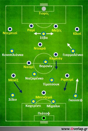 Παρέταξε ένα ιδιότυπο 4-4-1-1 με τον Βορονίν σε ρόλο 3ου χαφ σε μια προσπάθεια προσήλωσης του Τίμοτσουκ στα αμυντικά του καθήκοντα
