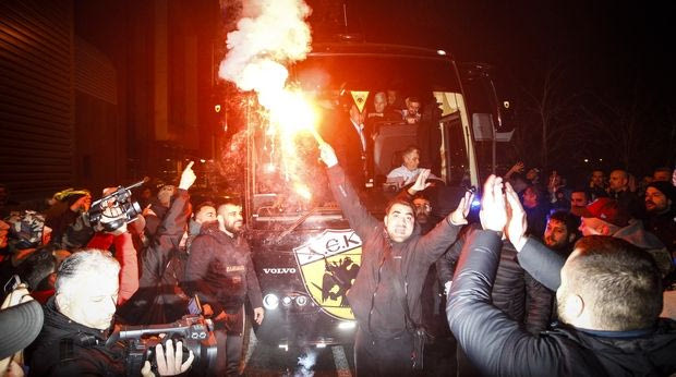 Αρκετή ώρα μετά το θρίαμβο στο “Καραϊσκάκης” επί του Ολυμπιακού με 2-1 η αποστολή της ΑΕΚ επέστρεψε στο ξενοδοχείο “Holiday Inn”. Εκεί τους περίμεναν περισσότεροι από 500 φίλοι της Ένωσης που δημιούργησαν απίστευτη ατμόσφαιρα και φώναζαν συνθήματα για το πρωτάθλημα!