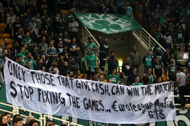 “Only those that give cash, can win the match? Stop Fixing the games. Euroleague mafia (μόνον εκείνοι που δίνουν χρήματα μπορούν να κερδίζουν; Σταματήστε να στήνετε παιχνίδια. Μαφία της Ευρωλίγκα)”, έγραφε χαρακτηριστικά έχοντας την υπογραφή της θύρας 13.
