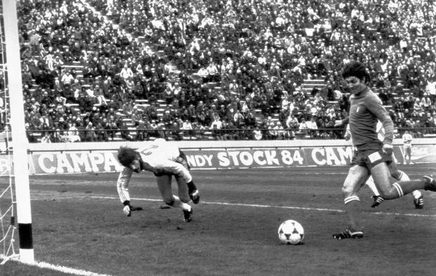Ο Ρόσι όμως έπιασε στον ύπνο την άμυνά της 3 φορές. Η κεφαλιά από τη σέντρα του Καμπρίνι για το 1-0, το κλέψιμο από την γκάφα του Ζούνιορ και το σουτ για το 2-1, ισοφαρίστηκαν από δυο έξοχα γκολ της “σελεσάο” (Σόκρατες και Φαλκάο). Όμως στο 74′, όταν η μπάλα του ήρθε λουκούμι μετά το ασθενές σουτ του Μάρκο Ταρντέλι και με ένα εύκολο πλασεδάκι νίκησε ξανά τον Βαλντίρ Περέζ, οι Βραζιλιάνοι δεν είχαν άλλη απάντηση. Ο 40χρονος Ντίνο Τζοφ είχε κάνει σπουδαίες αποκρούσεις κι η Ιταλία έπαιρνε μια θριαμβευτική νίκη.