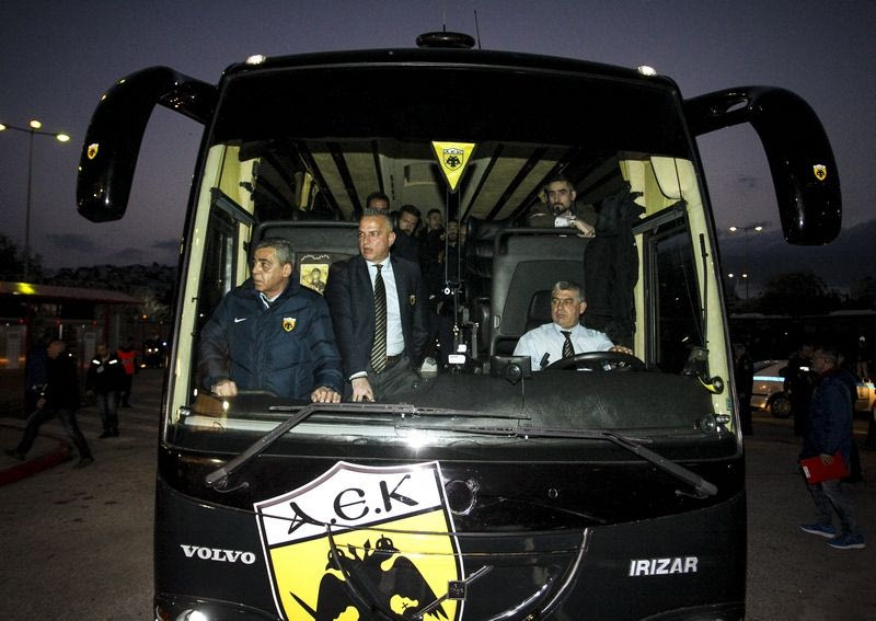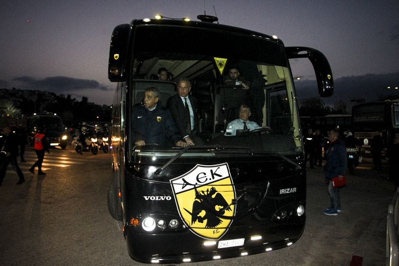 Πέτρες στο πούλμαν της ΑΕΚ!