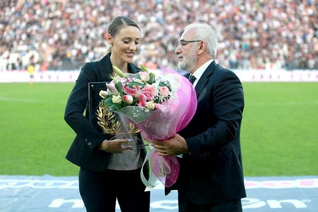 O Ιβάν Σαββίδης ανέλαβε ο ίδιος να τιμήσει τη "χρυσή" Ολυμπιονίκη στο ημιχρονο του αγώνα με τον Παναιτωλικό, ενώ από την ομάδα του Αγρινίου την βράβευσε ο Μάκης Μπελεβώνης.