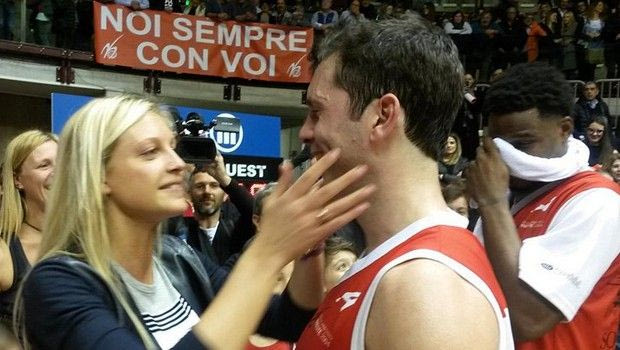 Η αγάπη των δύο γενήθηκε στα παρκέ της Τριέστε (αμφότεροι είναι Τριεστίνοι) και το βράδυ της Κυριακής επισφραγίστηκε με τον πλέον πανηγυρικό τρόπο, με τον Ιταλό μπασκετμπολίστα να καταφέρνει να αιφνιδιάζει την αγαπημένη του, μοντέλο στο επάγγελμα, και να της κάνει ένα από τα ομορφότερα δώρα της ζωής της.