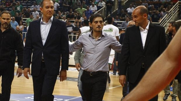 Ο διοικητικός ηγέτης του Παναθηναϊκού, Δημήτρης Γιανακόπουλος, οδήγησε τους αδερφούς Αγγελόπουλους στον πάγκο της ομάδας τους, ζητώντας μάλιστα από τον κόσμο να σταματήσει τα υβριστικά συνθήματα.