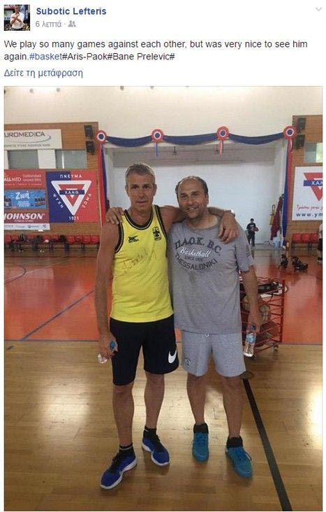 Μπορεί αν σ’ αυτή τη φωτογραφία υπάρχουν ο Λευτέρης Σούμποτιτς και ο Μπάνε Πρέλεβιτς! Συναντήθηκαν οι δύο στη Θεσσαλονίκη, πάτησαν παρκέ, φόρεσαν τις μπλούζες Αρη και ΠΑΟΚ και του έδωσαν να καταλάβει.