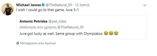 O Μάικ Τζέιμς είναι δηλωμένος οπαδός της Γιουβέντους και συχνά-πυκνά σχολιάζει τα περί της αγαπημένης του ομάδας στην Ιταλία μέσω των λογαριασμών του στα social media, κάτι που έκανε και την Παρασκευή (25/8) με αφορμή την κλήρωση των ομίλων του Champions League.