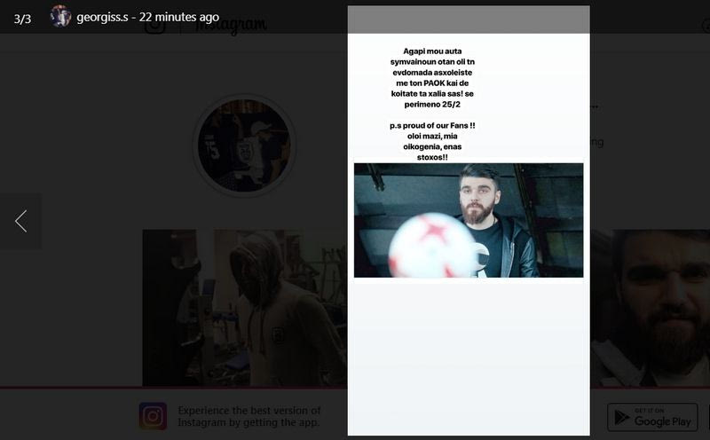 ΥΓ: Υπερήφανος για τους φιλάθλους!! Όλοι μαζί μία οικογένεια, ένας στόχος”.