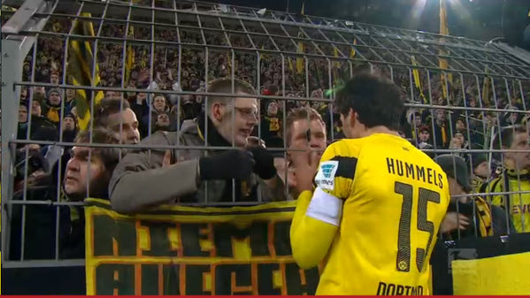 Τότε μετά από μια ήττα στο “Σίγκνταλ Ιντούνα Παρκ”, οι Ματς Χούμελς και Ρομάν Βαϊντενφέλερ πλησίασαν την κερκίδα των οπαδών, οι οποίοι παρέμειναν στο γήπεδο μετά τη λήξη του αγώνα και συζήτησαν μαζί τους!