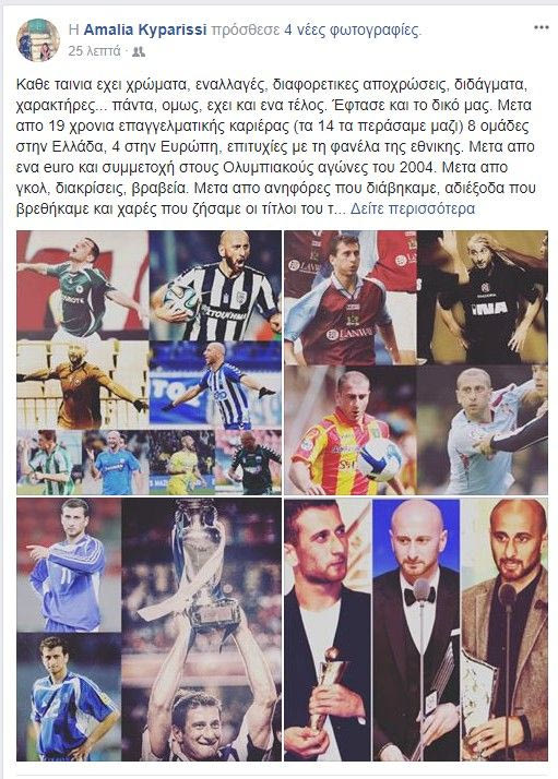 Ο Δημήτρης Παπαδόπουλος έβαλε τέλος στην τεράστια καριέρα του και η σύζυγός του Αμαλία Κυπαρίσση έκανε το δικό της, ξεχωριστό ποστάρισμά στο facebook για να τιμήσει το σύντροφό της.
