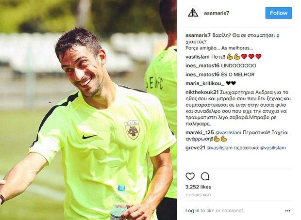 Ο τραυματισμός του Βασίλη Λαμπρόπουλου στο ματς με τον Πλατανιά ευαισθητοποίησε τον Αντρέα Σάμαρη, με τον μέσο της Μπενφίκα να του στέλνει μήνυμα μέσω Instagram.