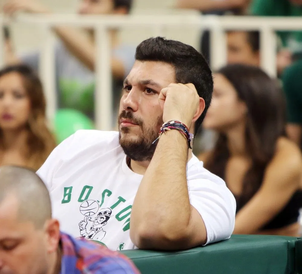Παρών ήταν και ο κουνιάδος του “Μπούρου”, Σταύρος Ψωμιάδης, ο οποίος μάλιστα φορούσε και μπλουζάκι Boston Celtics.