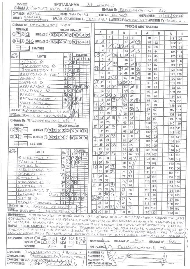 Από τον Ολυμπιακό σημείωναν τα εξής: “Όπως είναι προφανές από τις φωτογραφίες, το Φύλλο Αγώνα και από τα βίντεο που όλοι μπορούν να δουν, ο κύριος Γιαννακόπουλος ΕΒΡΙΖΕ, ΑΠΕΙΛΟΥΣΕ και ΜΟΥΤΖΩΝΕ τους διαιτητές και όχι τους σεκιούριτι που βρίσκονταν στο ΣΕΦ.