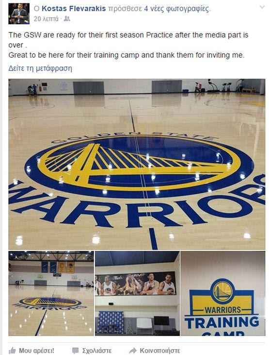 Αδραξε μία μεγάλη ευκαιρία και δίνει το παρών στις προπονήσεις των Γκόλντεν Στέιτ Ουόριορς ο Κώστας Φλεβαράκης σε μία προσπάθεια να ανοίξει τους προσωπικούς του ορίζοντες.