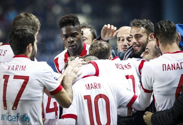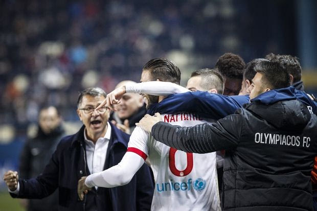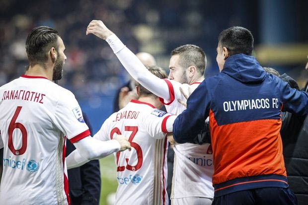 Τα λόγια του άγγιξαν τους ποδοσφαιριστές του Ολυμπιακού και αμέσως μετά το γκολ του αρχηγού έσπευσαν άπαντες κοντά του.