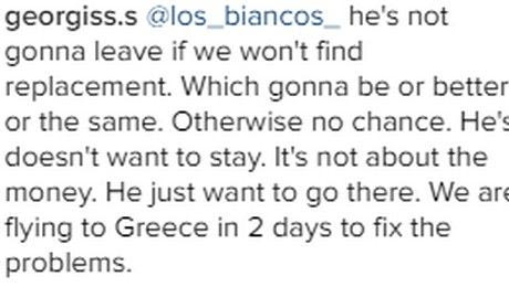 Θέλει να πάει εκεί. Σε δύο μέρες θα είμαστε στη Θεσσαλονίκη να το ρυθμίσουμε” ανέφερε χαρακτηριστικά απαντώντας σε follower.