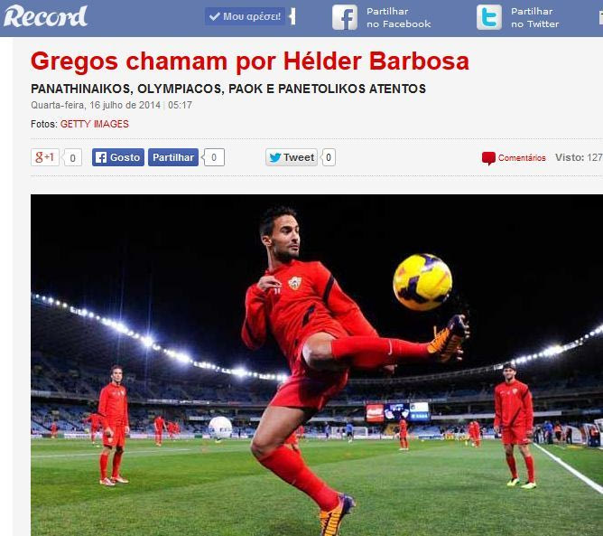 Από τη στιγμή που έγινε γνωστό πως η Μπράγκα προτίθεται να αποδεσμεύσει από το ρόστερ της τον Έλντερ Μπαρμπόσα, τέσσερις ελληνικές ομάδες, ο Ολυμπιακός, ο Παναθηναϊκός, ο ΠΑΟΚ και ο Παναιτωλικός παρουσιάζονται να επιθυμούν να εντάξουν στο δυναμικό τους τον Πορτογάλο αριστερό εξτρέμ. Ο 27 χρονος ανήκε στην Μπράγκα και πέρυσι αγωνίστηκε δανεικός στην Αλμερία.