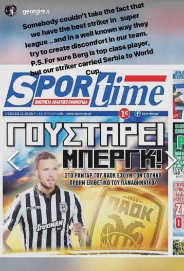 Υ.Γ. Σίγουρα ο Μπεργκ είναι τοπ κλας παίκτης, όμως ο δικός μας επιθετικός οδήγησε την Σερβία στο Παγκόσμιο Κύπελλο”.