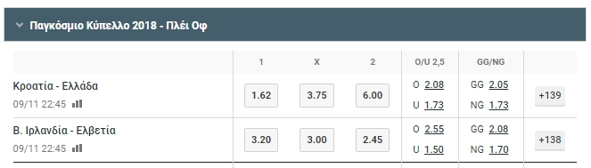 Στις 12 Νοεμβρίου θα γνωρίζουμε αν η Εθνική μας ομάδας θα συμμετέχει στο Μουντιάλ της Ρωσίας το καλοκαίρι του 2018. Μέχρι τότε πολλά μπορούν να συμβούν (κάποιος σοβαρός τραυματισμός πρωτοκλασάτου παίκτη), παρόλα αυτά οι εταιρείες στοιχήματος έβγαλαν ήδη τις πρώτες αποδόσεις.