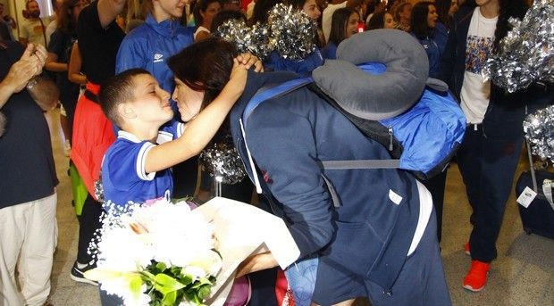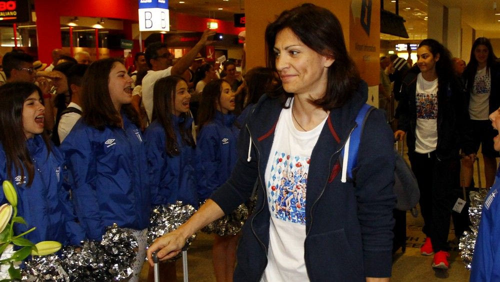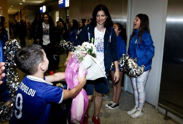 Ο… Μήτρογλου ήταν στο “Ελ.Βενιζέλος” για να υποδεχθεί, να καλωσορίσει και να αποθεώσει την εθνική μπάσκετ των γυναικών. Όχι ο Κώστας ακριβώς, αλλά ο πιτσιρικάς που έβαλε τη γαλανόλευκη φανέλα του διεθνούς φορ και έδωσε μια μεγάλη ανθοδέσμη στην Εβίνα Μάλτση.